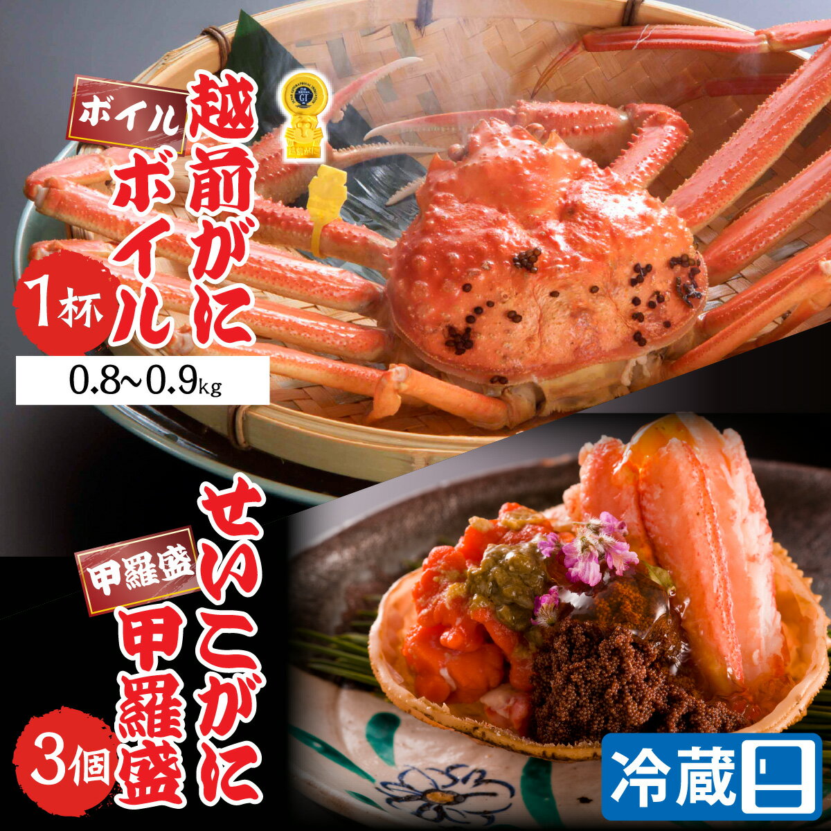 福井を代表する冬の味覚。オスのズワイガニで、濃厚な旨味と味噌が格別。姿・脚・ポーション・訳ありまで幅広く選べます。メスは「セイコガニ」と呼ばれ、内子や外子の濃厚さが人気です。