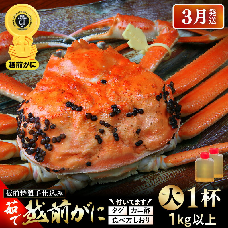 【ふるさと納税】≪茹で≫越前がに大(タグ付き)1杯(生で1kg以上)カニ酢90cc付 板前特製手仕込み 食べ方しおり付き【雄 ズワイガニ かに カニ 蟹 越前ガニ 姿 ボイル 冷蔵 福井県】【3月発送分】希望日指定可 備考欄に電話番号をご記入ください 132,000 円~ 提供自治体:越前町