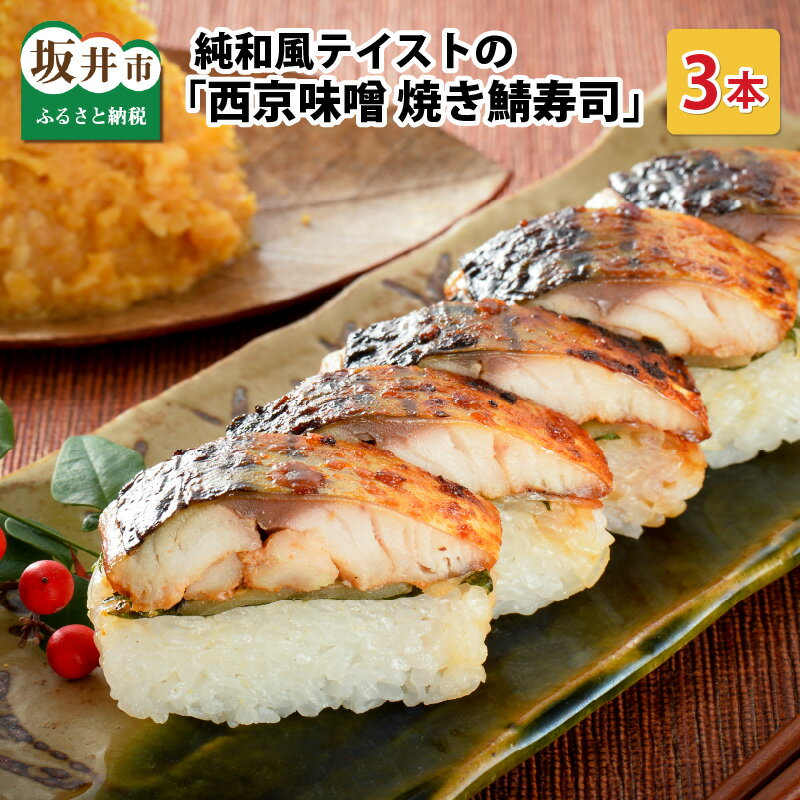 【ふるさと納税】純和風テイストの 「西京味噌焼き鯖寿司」 3本 【名物 ジューシー 焼きさば 押し寿司 さば寿司 みそ みそ焼き すし こしひかり 贈答 ギフト お土産 】 14,000 円~ 提供自治体:坂井市