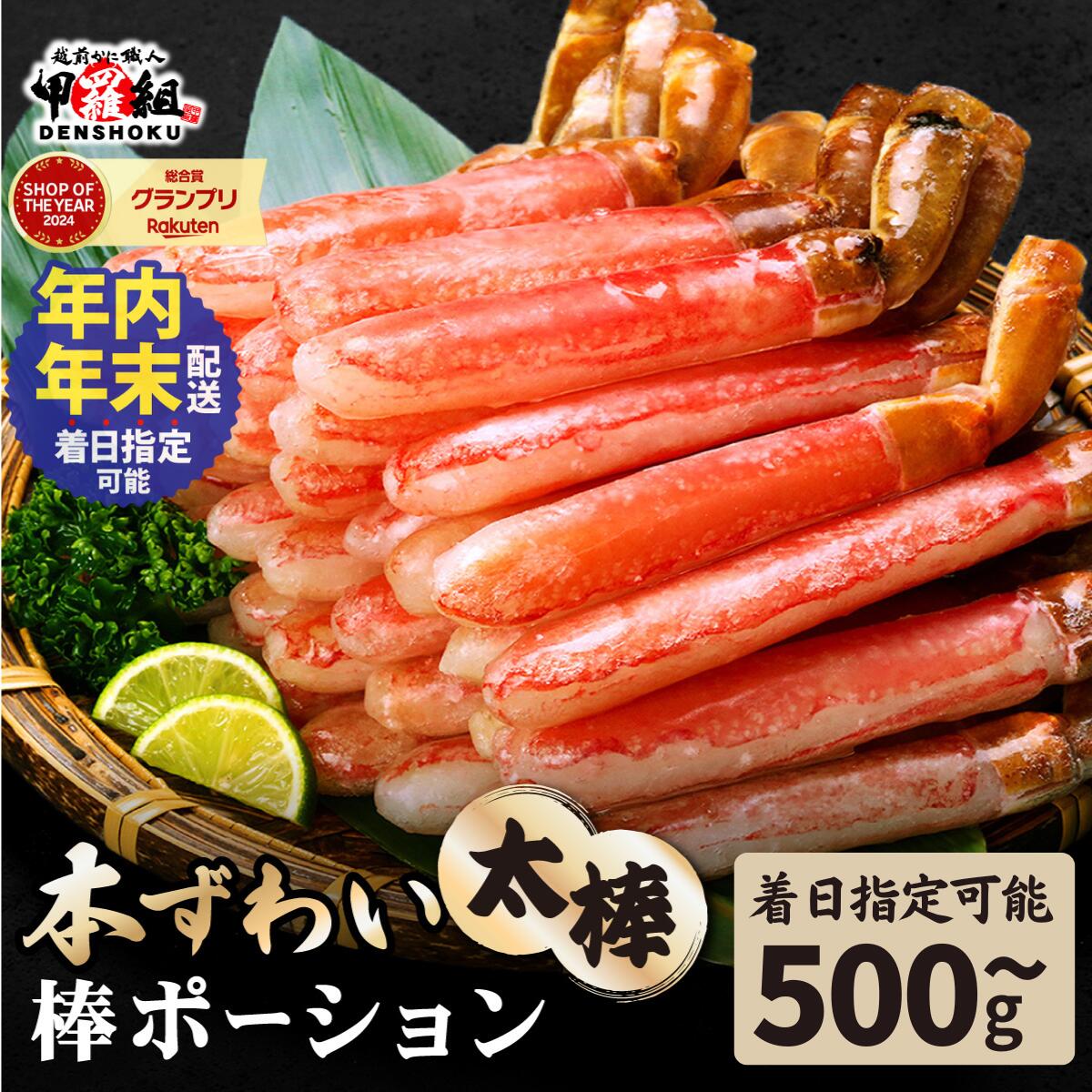 【ふるさと納税】1kg28,000円『年内配送可 (12月25日決済完了分まで)』着日指定可能! 最短3営業日以内発送 極太 生ずわい蟹 棒ポーション(殻剥き) 総重量500g〜2.5kg (解凍後400g〜2kg)【甲羅組 ズワイガニ ポーション お歳暮 お中元 ギフト 贈答】