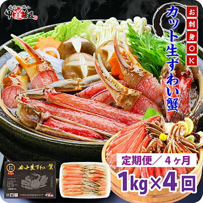 【ふるさと納税】定期便 ≪4ヶ月連続お届け≫ 【 生食 OK 】 カット生ずわい蟹 内容量1000g/総重量1300g【甲羅組 海鮮 定期便 魚介類 ずわい蟹 ずわいガニ ズワイガニ 魚貝類 先行予約】